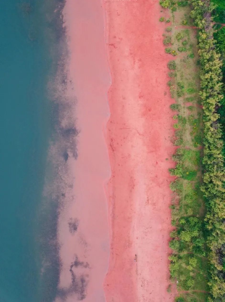 小红书@摄影师Harper(富龙版)遇上天气好的时候,沙滩就是浪漫的粉色。但即使是阴天,也呈现出砖红色,上帝视角超震撼。