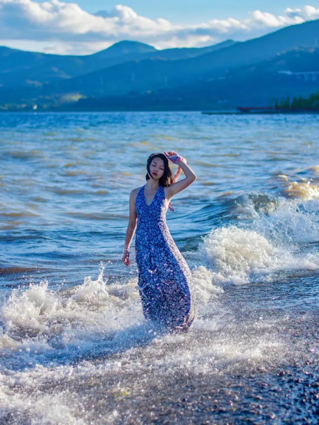 小红书@ 陈玫瑰郑美丽就像落日前渲染天空的粉紫色晚霞落入了湖水,云南柔和的晚风一吹,湖面的涟漪便染红了整片沙滩。