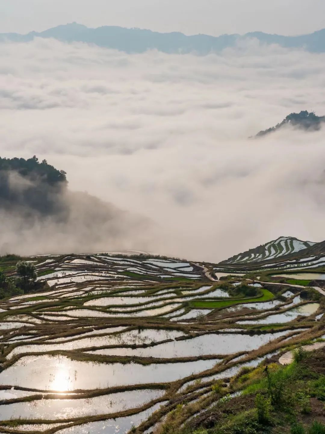 小红书@ xiaoxiaohugo它就像是大地的指纹,田埂曲折迤逦,层层叠叠。冬天的时候,就像一面镜子,倒映着五光十色的天空,惊艳世人。