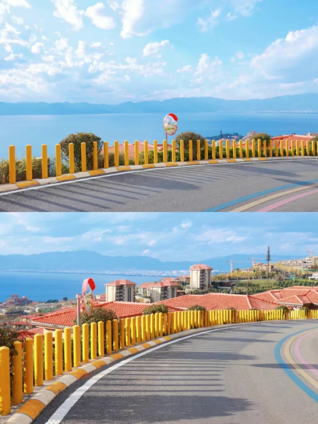 小镇很美,环抚仙湖的那条路像极了厦门。黄色清新的栏杆搭配红房子,远处是湛蓝的湖水,美到了极致。