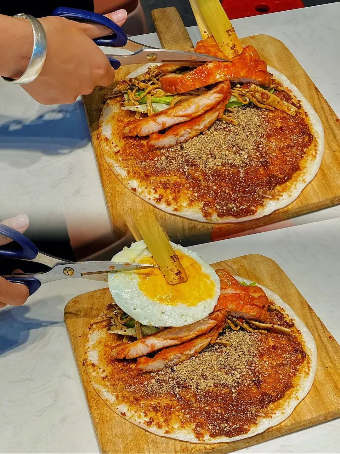 小红书@野生脆脆鲨��如果胃口够大,可以搞一个豪华顶配版本,五花肉、鸡排、肉肠、卤鸡蛋、土豆丝全都加上,每咬一口都回味无穷。