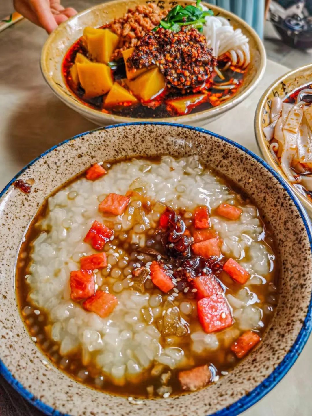 小红书@��星言不是星爷散发着烟火气的街道上,一碗冰稀饭,嗦一口凉粉,再来上一份炸洋芋,晚上再吃一份巨好吃的米线。
