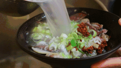 热气腾腾的肉片、弹牙的血块、筋道的肚丝、软糯的肝片、嫩绿的葱花末等层层叠叠铺满碗底,滚烫醇正的清汤往碗里那么一浇,飘香的汤味便四散开来。羊汤的香味,隔老远都能闻到。⇨ 驴肉汤