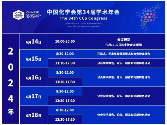 中国化学会第34届学术年会将于2024年6月15日至18日在广东省广州市举行,6月14日报到。本届年会由中国化学会主办。