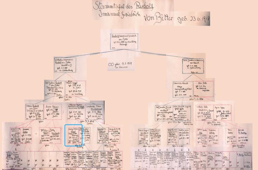 家谱图,顶端是鲁迪·拉克的舅舅,蓝色框出的人就是黑格尔在写《百万英里之路》时,拉克教授显然也继承了这个“真·祖传”的辩证法,在他创作的方法论第三步里,拉克教授会在构想和解释之间来回思考。