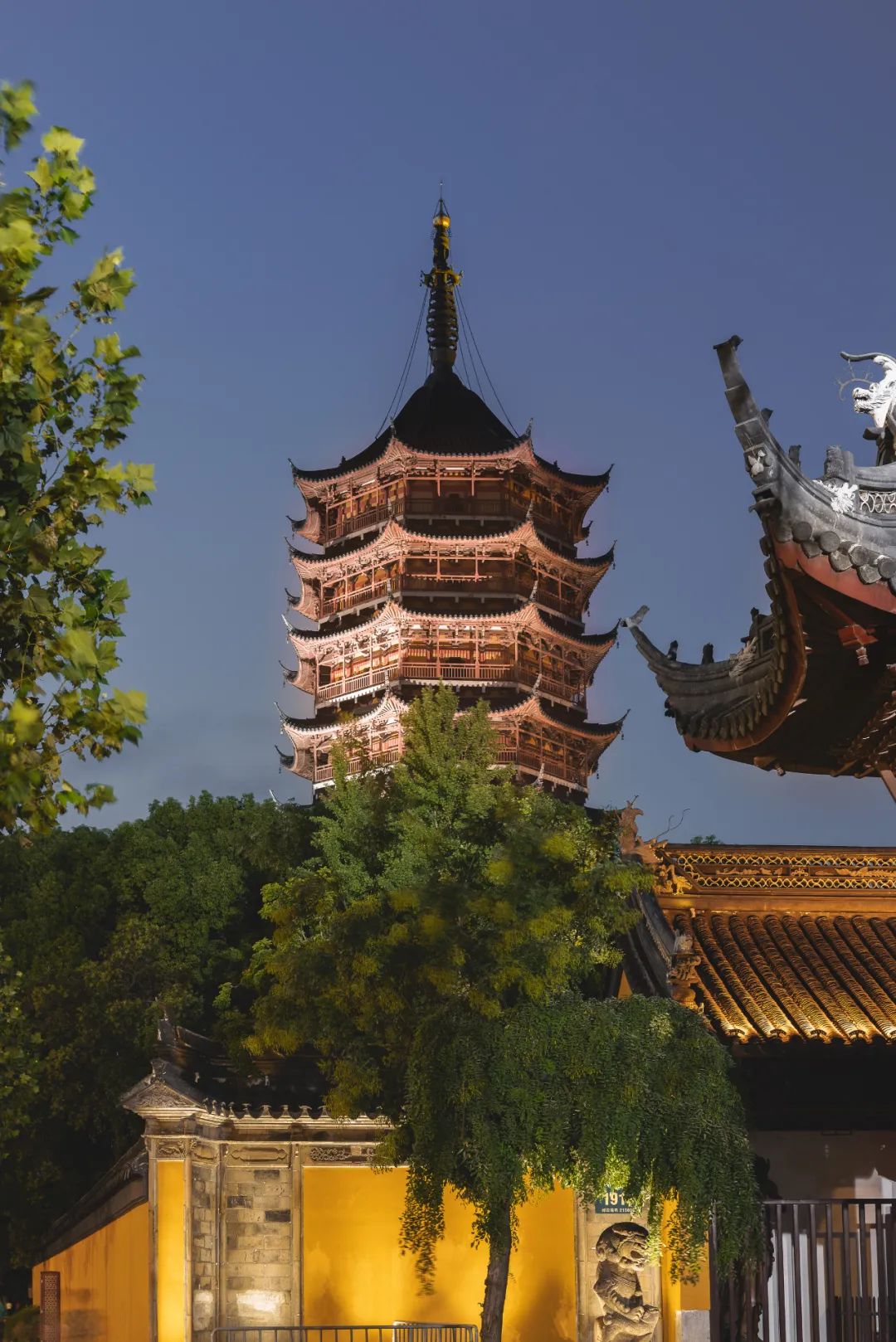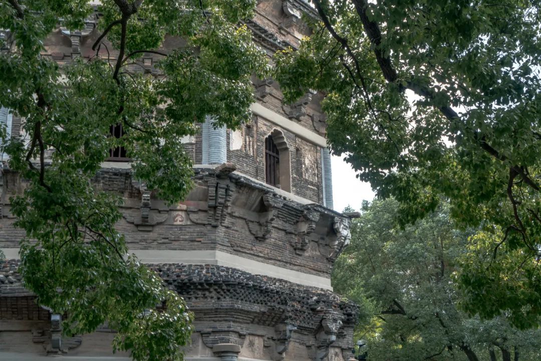 江南名塔北寺塔,为吴中第一古刹,也是一处古典山水寺庙园林景观,高耸的巨树掩映着古塔,寺内亭台水榭,古树繁茂苍翠,绿影婆娑,石径回廊萦绕其中,营造出庄严肃穆的环境,静隐于寺院深处,古朴而幽静。