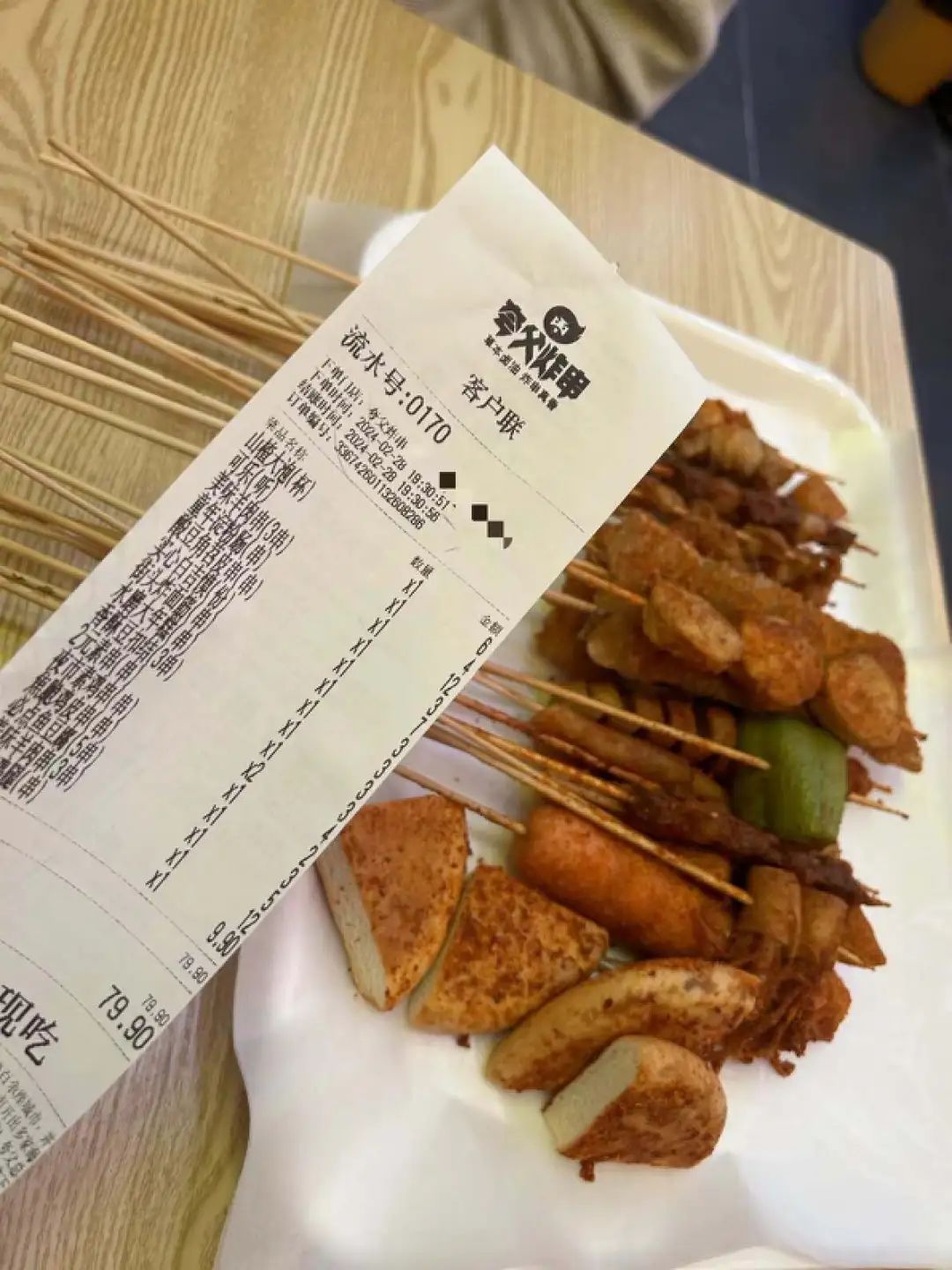 吃完小一百的炸串,泡泡表示有点腻,也没多好吃,不如小区门口的地摊有味道。对打工人来说,“标准化的夸父就像没有灵魂但稳定的投喂机器,夫妻档的独家秘方才是生活的真谛”。