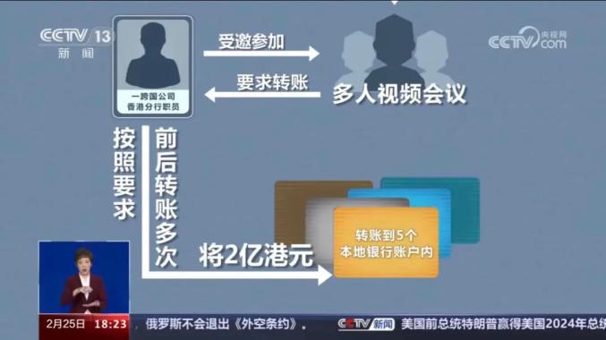 在这起案件中,一家跨国公司香港分部的职员受邀参加总部首席财务官发起的“多人视频会议”,并按照要求先后转账多次,将2亿港元分别转账15次,转到5个本地银行账户内。其后向总部查询才知道受骗