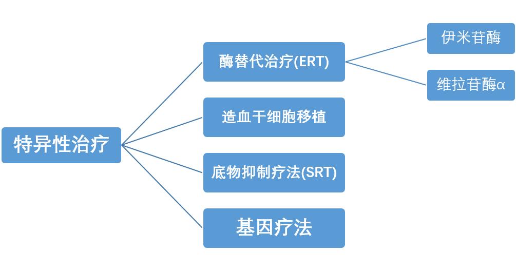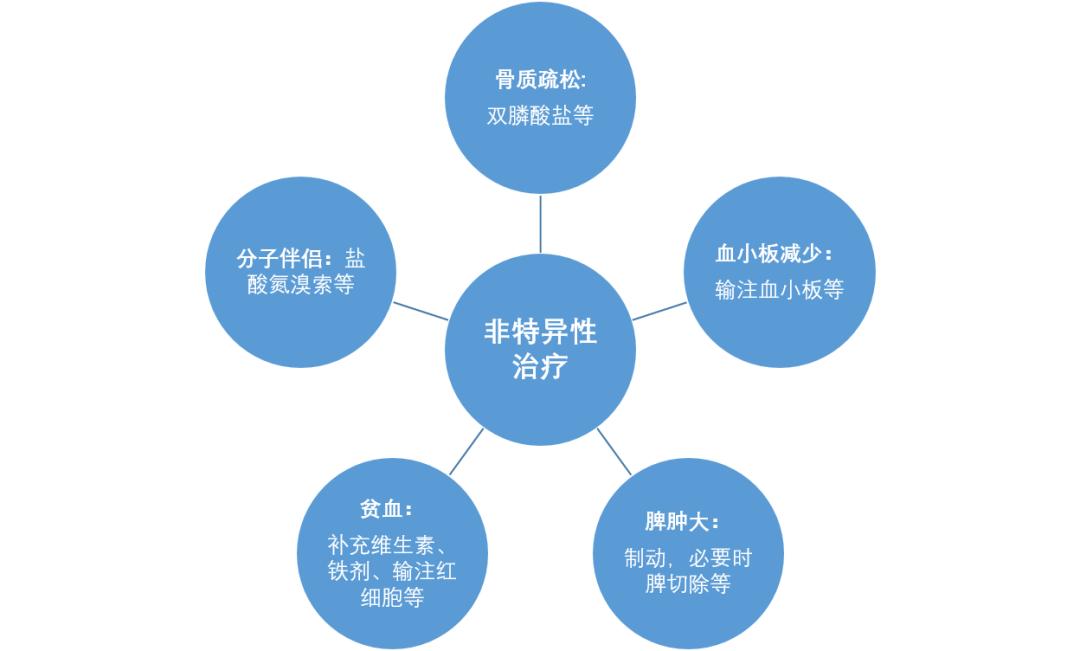 戈谢病目前主要的治疗方法有特异性和非特异性治疗。特异性治疗包括酶替代治疗、造血干细胞移植、底物抑制疗法以及基因治疗。