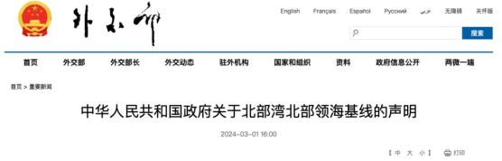 来源 | 外交部网站原标题:《中华人民共和国政府关于北部湾北部领海基线的声明》