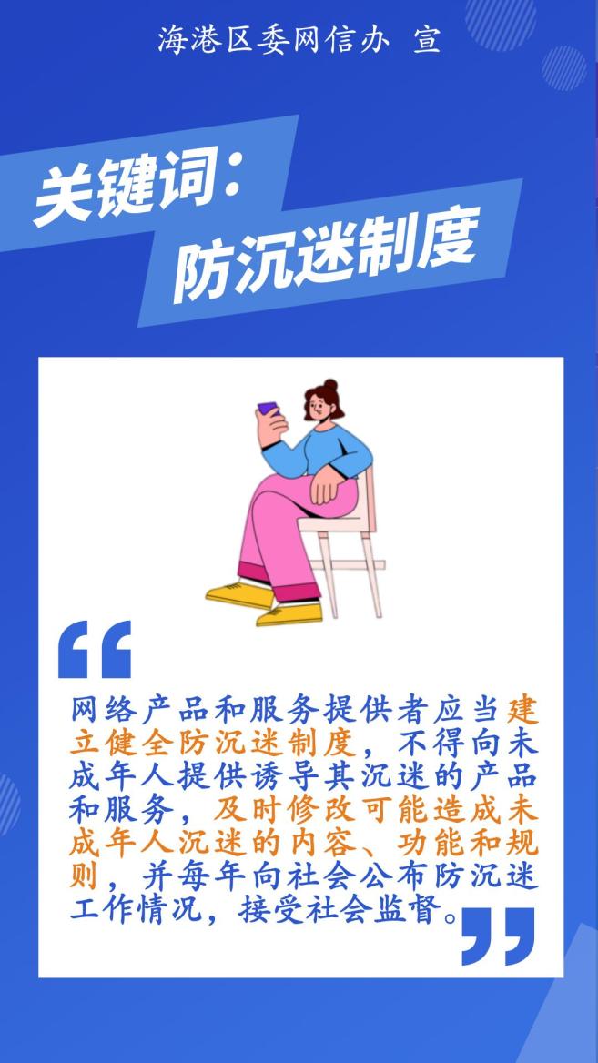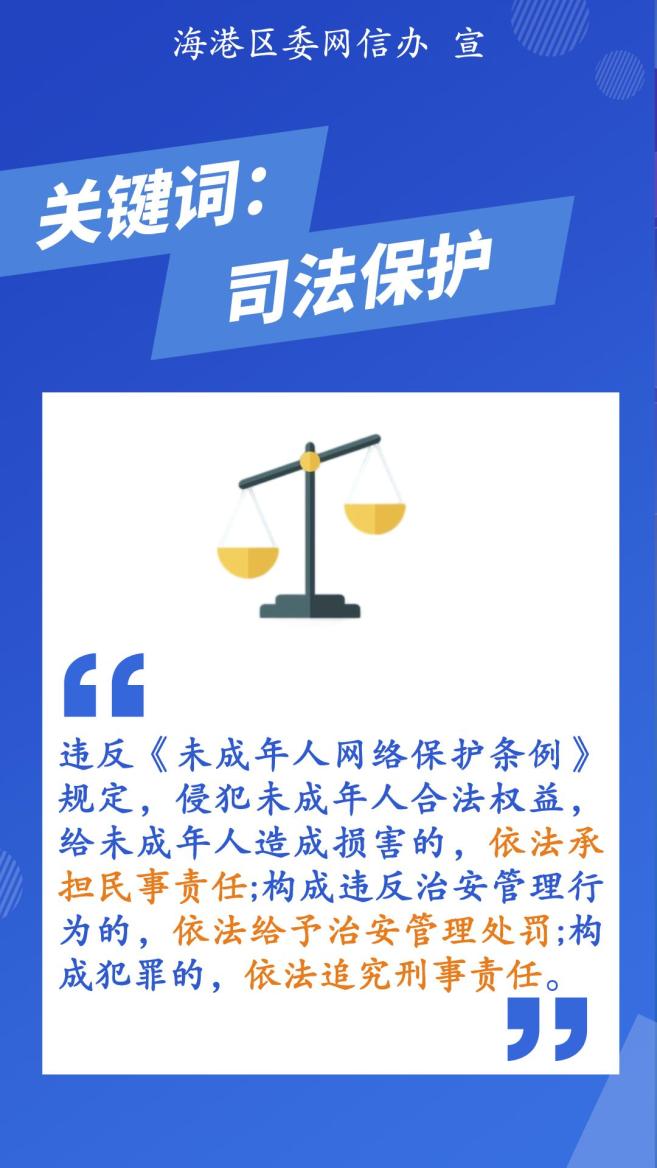 2024年1月1日,《未成年人网络保护条例》正式施行。为了让更多未成年人了解这部专门性的未成年人网络保护综合立法,秦皇岛海港区委网信办给大家圈了重点,让大家一图读懂《未成年人网络保护条例》!