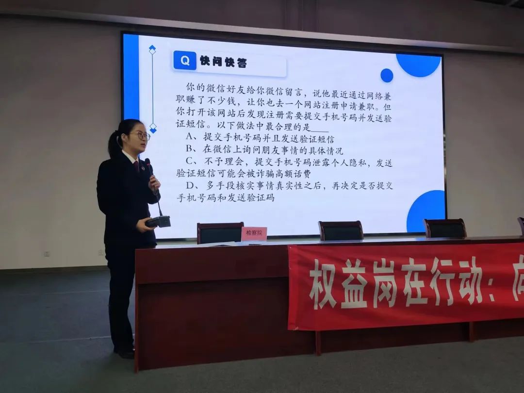 在卢龙镇中学,县人民检察院工作人员为同学们带来了一堂别开生面的网络安全课。工作人员围绕《未成年人网络保护条例》相关内容和上网安全、防骗意识、防骗技巧等多个方面,结合真实案例为学生们讲解互联网法律法规相关知识,并通过提问互动的方式和学生们交流,让学生们了解网络诈骗的危害、生活中存在哪些网络安全威胁,以及如何提高网络安全防护技能。