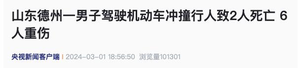 据央视新闻消息,2024年3月1日13时41分,山东德州市公安局交警部门接群众报警:105国道与101省道交叉口北侧宝信加气站附近发生一起交通事故。