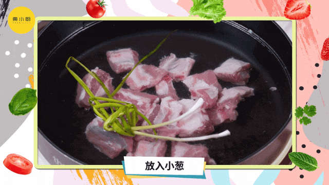 3水开后,撇去浮末,将排骨捞出后洗净,重新放入锅里,再把玉米段、姜片和葱一同放入;