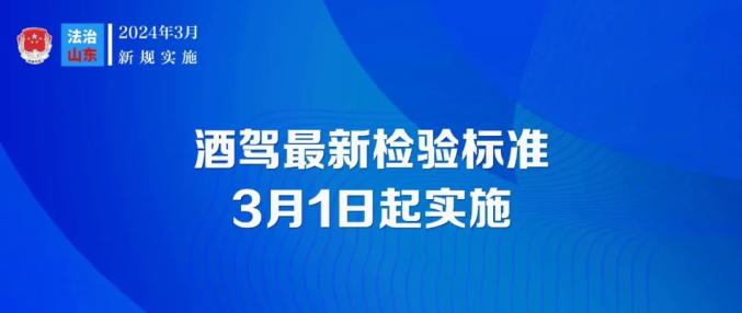 国家标准《血液、尿液中乙醇、甲醇、正丙醇、丙酮、异丙醇和正丁醇检验》(GB/T 42430-2023),3月1日起实施。新检验标准以血液中乙醇的含量检验为例:饮酒驾驶为0.20mg/mL,驾驶员血液中乙醇含量大于或等于0.80mg/mL属于醉驾。检验线性范围为0.1mg/mL~3mg/mL。