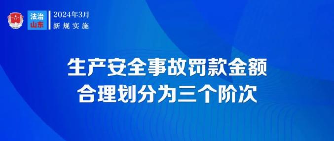 应急管理部印发《生产安全事故罚款处罚规定》,3月1日起实施。《规定》修改完善的主要内容有:一是完善事故罚款处罚裁量权基准维护当事人合法权益,将一般事故、较大事故、重大事故和特别重大事故的罚款金额合理划分为三个阶次;二是结合实践依法规范有关严重违法情节的认定,明确了关闭、破坏直接关系生产安全的监控、报警、防护、救生设备等六种可以按照罚款数额的二倍以上五倍以下对负有责任的生产经营单位处以罚款情形;三是根据法律规定调整明确相关的罚款金额。