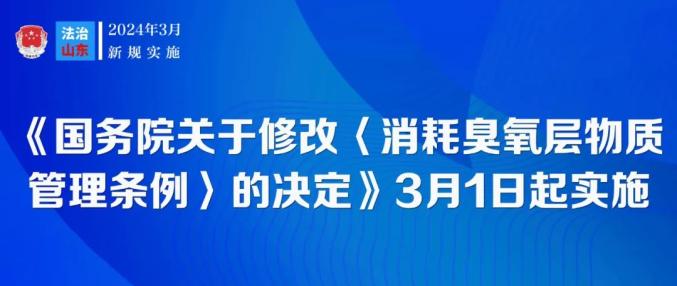 《国务院关于修改〈消耗臭氧层物质管理条例〉的决定》3月1日起实施。《条例》聚焦与国际公约对接、完善消耗臭氧层物质管理措施、强化法律责任等问题确定修改内容。将消耗臭氧层物质界定为“列入《中国受控消耗臭氧层物质清单》的化学品”,不再保留“对臭氧层有破坏作用”的限定性表述,以便将氢氟碳化物纳入受控清单;规定生产、使用消耗臭氧层物质数量较大,以及生产过程中附带产生消耗臭氧层物质数量较大的单位,应当安装自动监测设备,与生态环境主管部门的监控设备联网,并保证监测设备正常运行,确保监测数据真实准确。