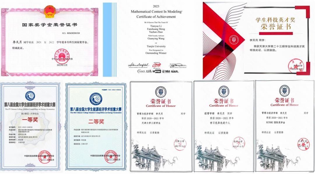 过程中的收获比结果本身更重要课堂之外,李天月参加了许多学科竞赛,并且都游刃有余斩获佳绩。一路走来,她认为优秀竞赛作品背后一定是高质量时间精力的投入,而执行力则是其中不可或缺的一环,当产生好的想法时要大胆尝试、敢于突破,同时也要制定好详细的计划并严格执行,保证工作量。此外,分工明确、凝聚力强的队伍往往会取得更好的成绩,因此团队协作能力同样重要,在比赛中与团队成员的沟通交流、互相鼓励,也让李天月收获了可爱、珍贵的友情。
