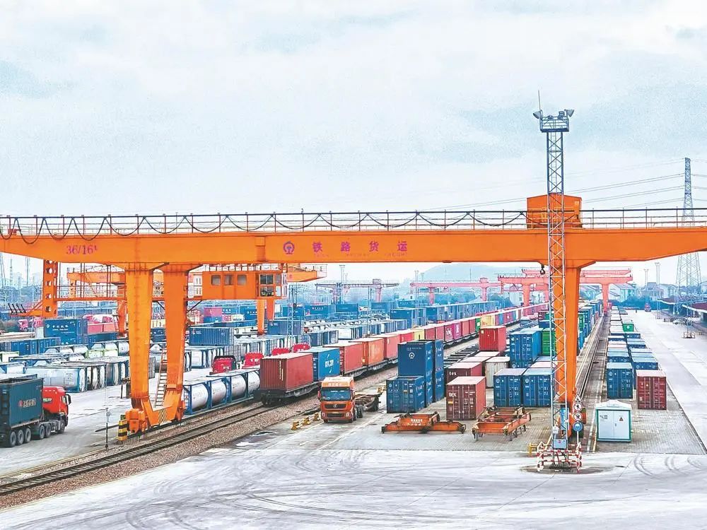 3月1日下午,铁路皋埠货运站,皋埠—宁波舟山港海铁联运班列装箱完毕,即将发车。二