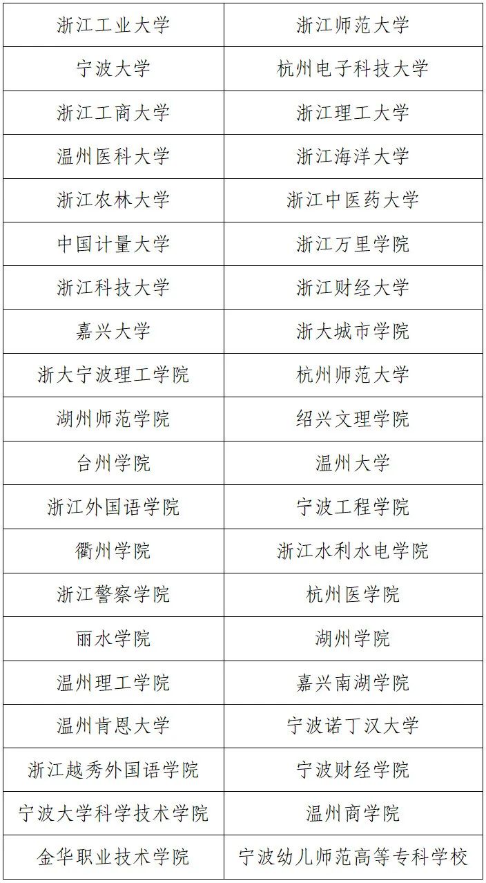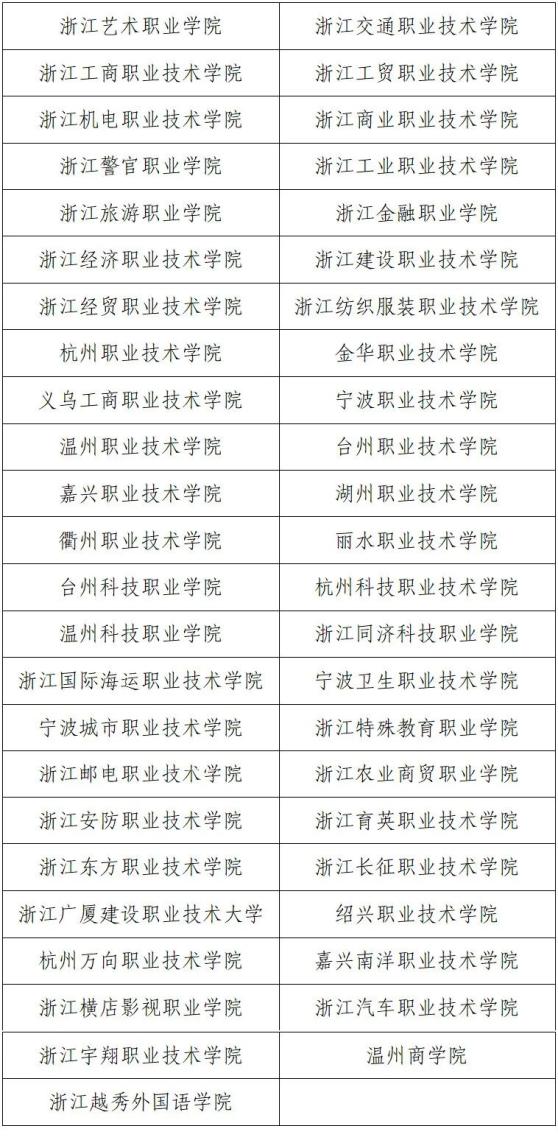2024年浙江省三位一体综合评价招生试点高校名单
