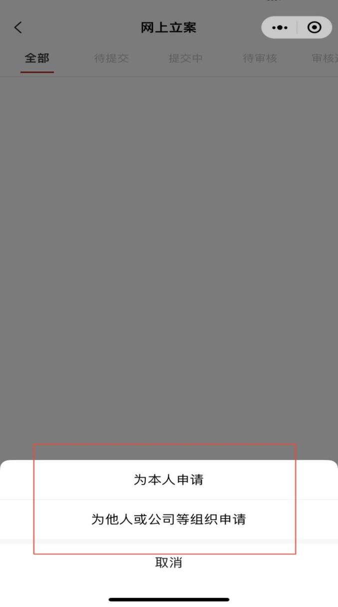 (图4)3.网上申请二审立案操作。首页点击“我要立案”,选择“审判立案”(图5),弹出弹窗后选择“不愿意”(不影响实际工作中调解工作的开展)(图6),系统跳转图7,选择“为本人申请”,诉讼代理人可选择“为他人或公司等组织申请”,跳转为图8,选择原审法院的上一级法院和民事或者行政二审后点击下一步,仔细阅读“立案须知”(图9)后点击下一步,跳转为图10,在该页面中带※为必填项,可点击上诉状旁“示例”查看文书模板、材料拍照要求。