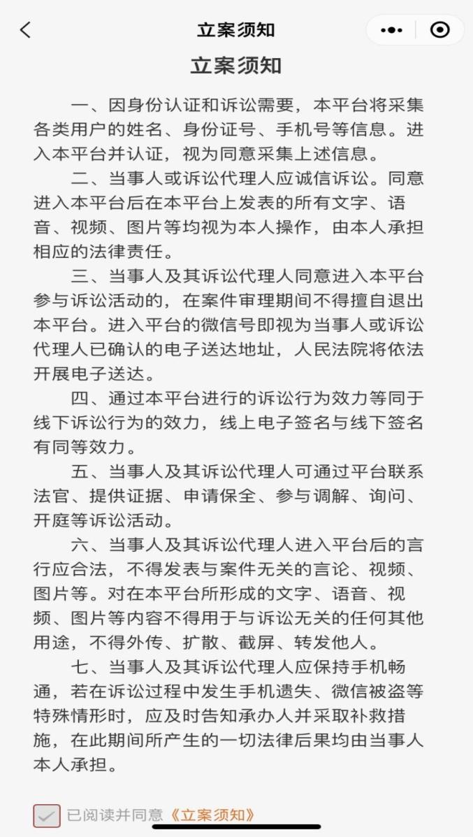 7.当事人可以通过本平台接收人民法院办理结果反馈及重要流程节点信息,或拨打12368诉讼服务热线进行查询。