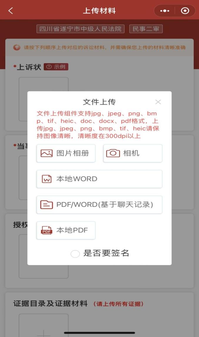 5.当事人需要提交的上诉相关材料包括上诉状、身份证明和授权委托手续以及相关证据材料。以上材料可为PDF、JPG、PNG、WORD等格式,但需保证上传材料规范、完整、清晰。