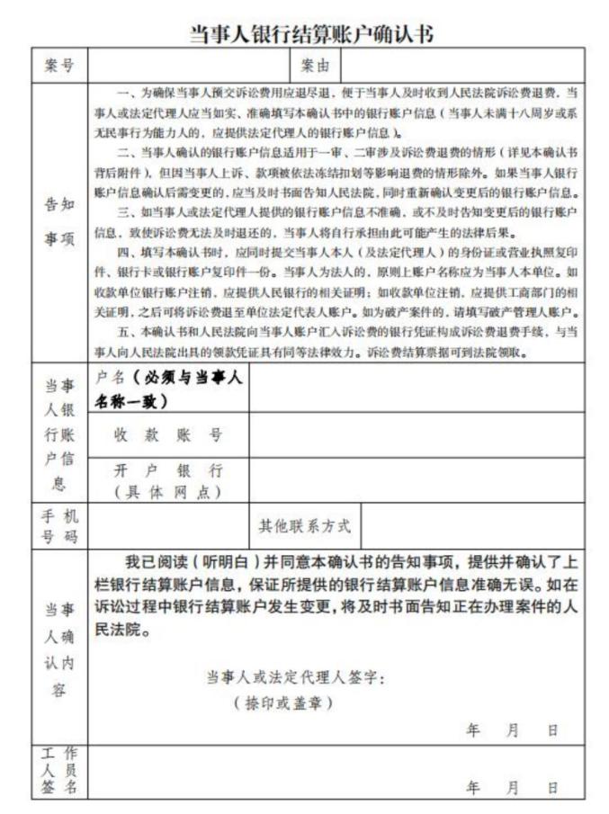 (图12)“收款账户确认书”处,如涉及遂宁地区案件,请添加遂宁法院制发的银行账户模板用于上诉费退费,文书模板(双面打印)可在微信公众号“遂宁市中级人民法院”搜索输入“文书模板”点击下载,也可登录”官网http://scsnzy.scssfw.gov.cn/或搜索“四川省遂宁市中级人民法院”,进入“诉讼服务”-“诉讼文本”中点击下载文书(图13、14);如直接引入,点击“添加收款账户”跳转到“新增收款账户”(图15),仅能选择本人(代理人可选择公司账户或者代收人),且准确填写的收款人身份信息、账户及开户行、联系方式仅能为上诉案件当事人本人的相关信息。