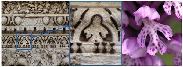 公元前1-4世纪期,凯撒广场古庙顶上发现的一个兰花装饰兰科植物那么多