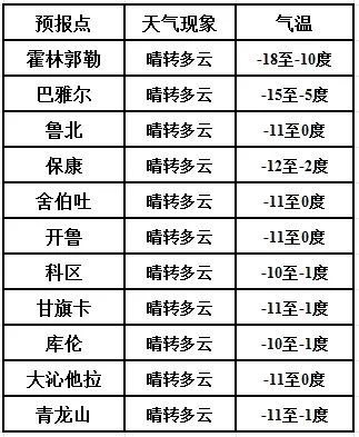 今天夜间到明天白天:晴转多云,霍林郭勒、扎鲁特旗北部西北风3-4级转4-5级,其余地区西北风3-4级;市区最低气温:-10℃,最高气温:-1℃。