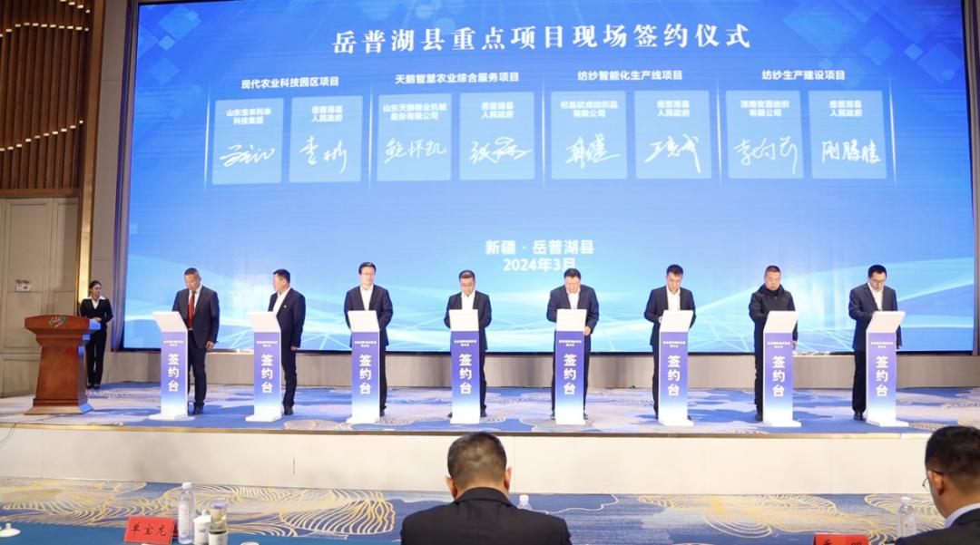 在推介会上,还举行了机械、纺织、电子、生物科技等重点项目签约仪式,签约意向投资总额达17.6亿元。企业代表山东宝来利来科技集团董事长单宝龙在致辞中表示,产业援疆是中央赋予我们广大企业的历史责任,是增强新疆自我发展能力的有效途径,同时也是广大企业拓展发展空间、提升竞争能力、谋求长远发展的战略选择。