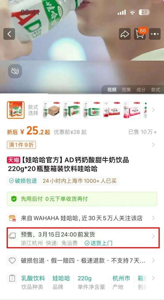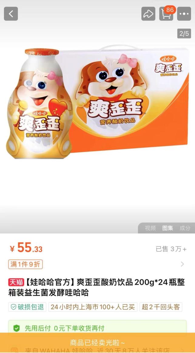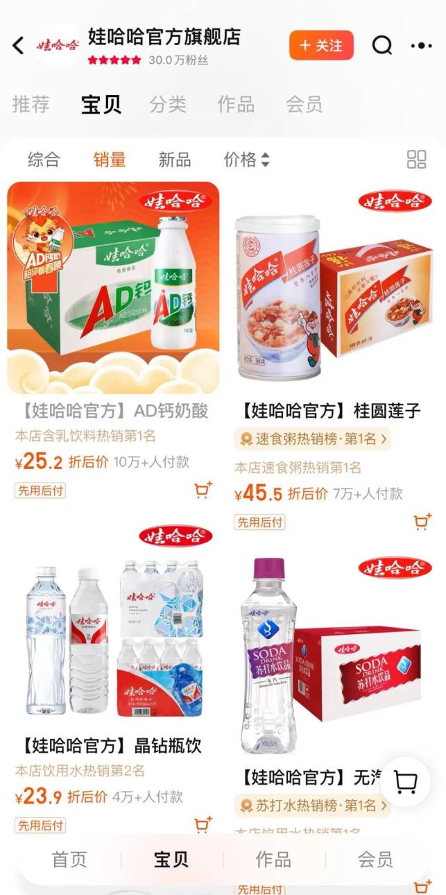 记者今天在娃哈哈官方旗舰店看到最高销量的AD钙奶