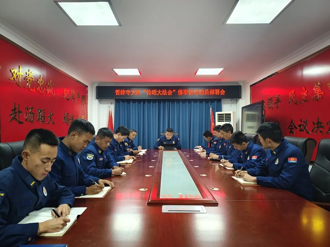 活动前,哲蚌寺救援大队党支部主动作为、提前谋划、科学布控,结合方案要求及寺庙实际,组织全体指战员召开消防安保部署会议,会上强调执勤记录,细化工作任务,明确工作职责,强化工作要求,提高思想认识,以高度的政治敏锐力和工作责任感精准有效的完成此次安保任务;二是主抓中心,通力协作