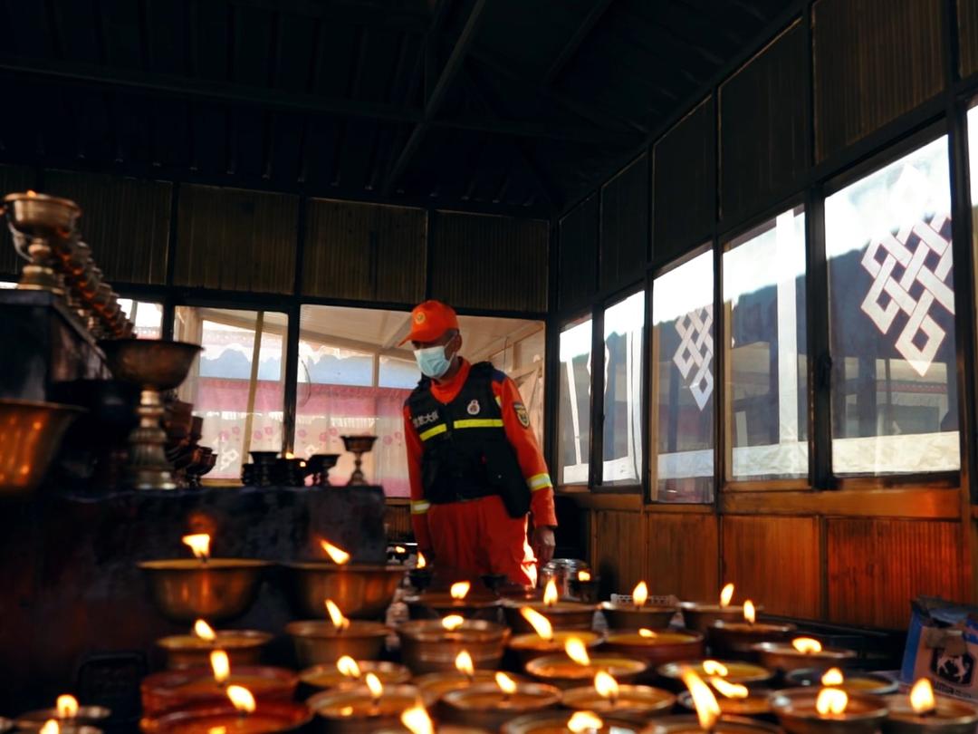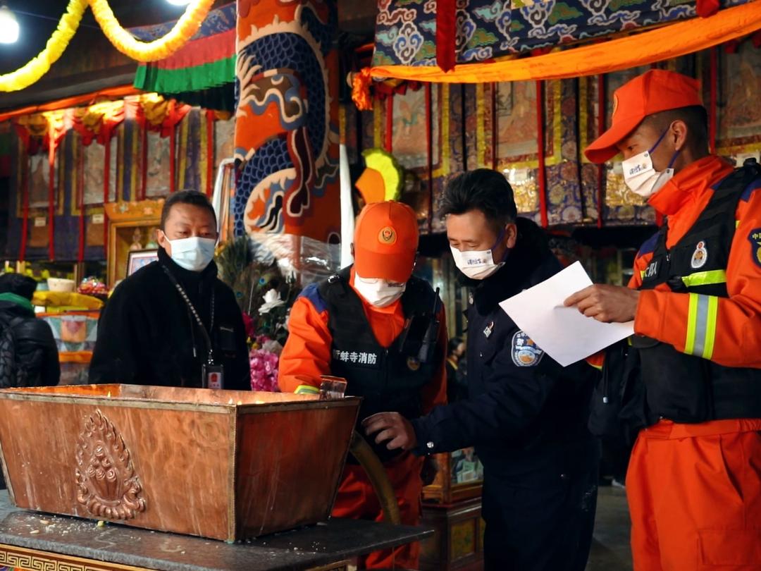 大队明确了以措钦大殿、主供殿(强巴通真)为重点,其它殿堂同频共振的巡查方针,积极联合寺庙管委会、当巴派出所全力开展防火巡查及帮扶工作,形成了驻寺各单位联勤联动工作模式和勠力同心、齐抓共管、通力协作的有利格局。同时将执勤指战员划分为7个执勤小组,设立蓝焰服务驿站,不间断开展“火焰蓝”志愿服务宣传行动,既做好了便民、助民工作又消除了潜在的安全隐患。设立前置备勤点,大队每日派出1车3人在前置备勤点值班,采取“白+黑”工作模式,24小时不间断在寺庙内开展防火巡查和定点值守,达到了靠前指挥,早发现早消除的工作目标。并且利用“智慧消防”系统,无人机等技防手段进行实时监测消防安全动态,确保了活动期间的消防安全形势持续平稳。