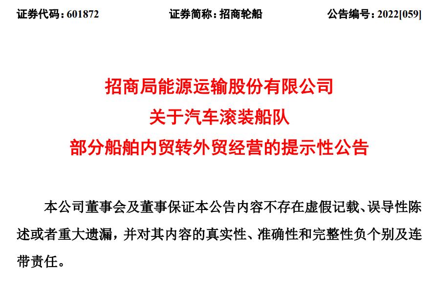 先是航运这块儿,前两年,招商局能源运输股份有限公司就发了公告,说已经和国内、国外的一些一线主机厂签署了长期的合作协议,不管买、造、租、还是合作,都得把滚装船队的外贸业务搞起来。