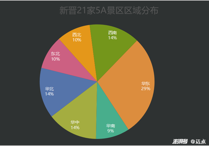 从分布地区来看,华东地区共6家景区入选,华南、东北、西北地区各有2家景区入选;华中、华北、西南地区各有3家景区入选。这意味着,在经济实力较强、旅游客源较为丰富、旅游市场开发程度较早的地市,国家5A级景区创建的成功率也最高,彼此之间呈正比例增长。