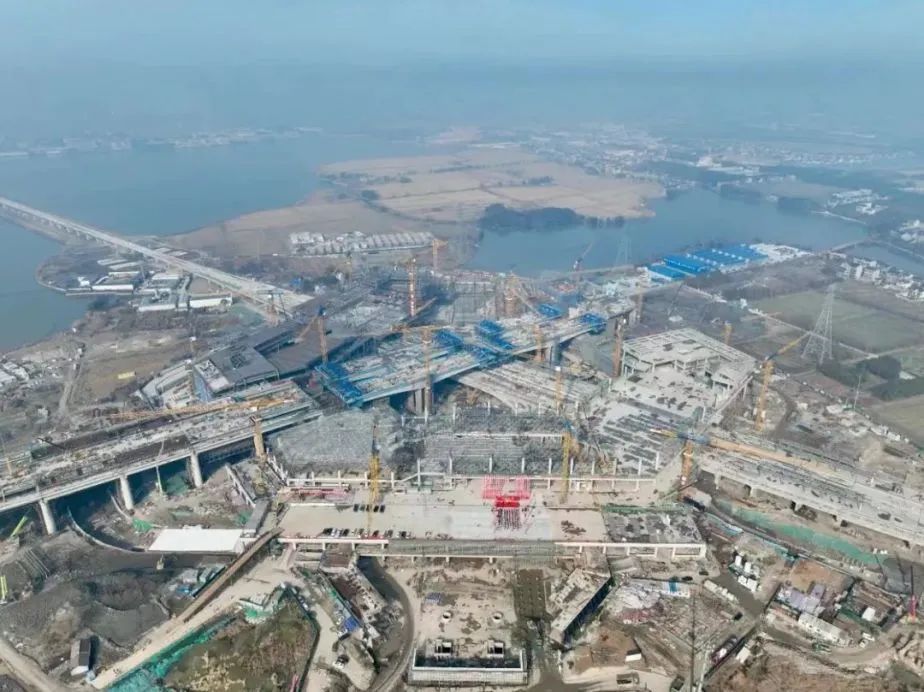 苏州南站苏州南站站房主体结构已经完成封顶,正在进行外立面施工。