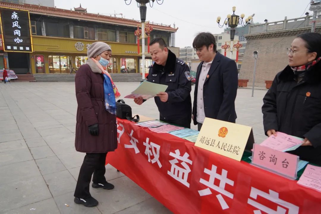 此次宣传活动,共接受现场法律咨询30余人次,发放宣传材料400余份。下一步,靖远县人民法院将全面贯彻习近平总书记关于妇女权益保障的重要指示,不断探索和创新维护妇女儿童权益工作思路和制度机制,利用在县法院建立的“巾帼工作室”与县妇联强化沟通协作,建立“法院+妇联”的联动机制,形成群体合力,更好地开展妇女维权工作,为维护社会稳定和家庭幸福美满提供坚强的法治保障。文字、编辑、排版: 王丽丽