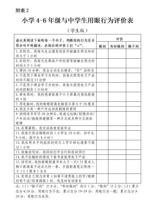 家长鼓励并积极参与孩子的课外活动,完成课外体育家庭作业;周末及节假日和孩子走出户外、走向大自然,增加日间户外活动,缓解视疲劳、强身健体。引导孩子自主管理,合理规划作业及作息时间,确保充足的睡眠时间。