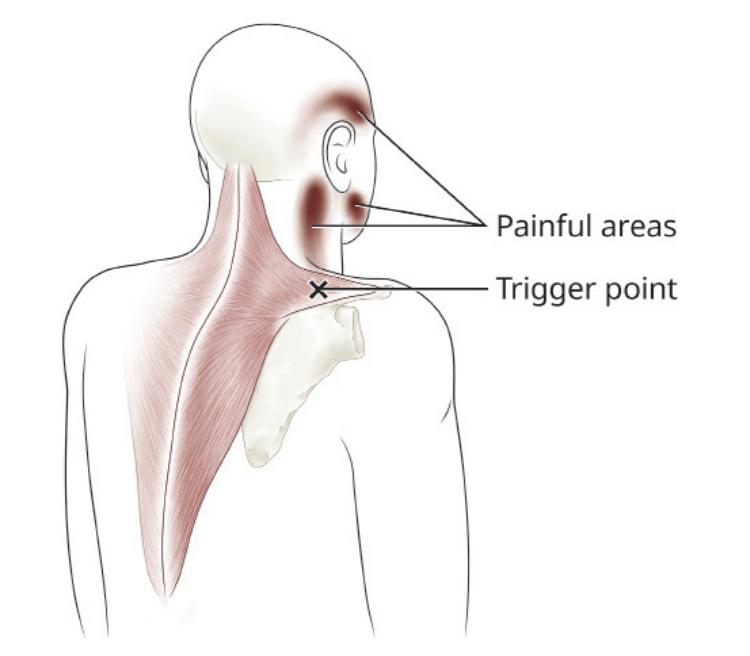常见的头痛,是斜方肌上侧的一个扳机点导致的图片来源:网络