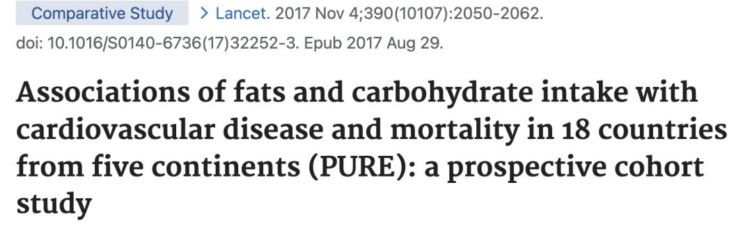 加拿大学者团队在权威医学杂志《柳叶刀》发表过研究,该研究发现高碳水化合物摄入与全因死亡率增加有关,而总脂肪和不同种类脂肪的摄入与全因死亡率降低有关。