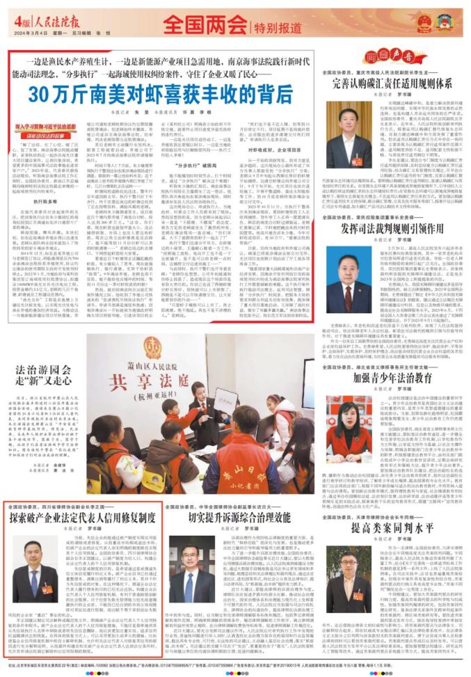 原标题:《全国政协委员、四川省律师协会副会长李正国:探索破产企业法定代表人信用修复制度》