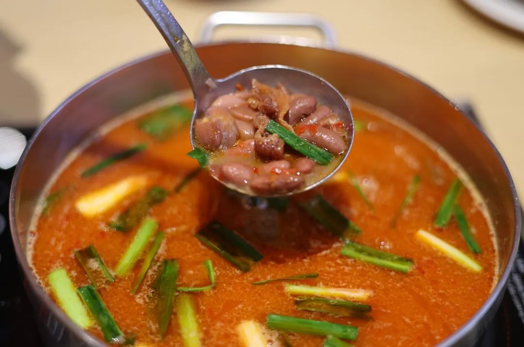 豆米火锅:用豆子熬制的汤底清香四溢,加入腊肉或软哨,配以贵阳当地特制的配料,在锅中烫菜,入味厚重而鲜感十足。