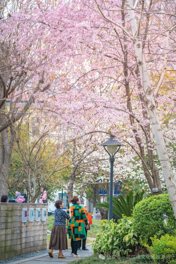 赏樱最方便的是「汉口江滩」,附近的「解放公园」也有樱花分布,但数量不算多。从武汉天地“黄浦路”站坐轻轨1号线,可以直达「堤角公园」,能拍到樱花+轻轨同框的画面,是本地人很爱的小众赏樱公园。