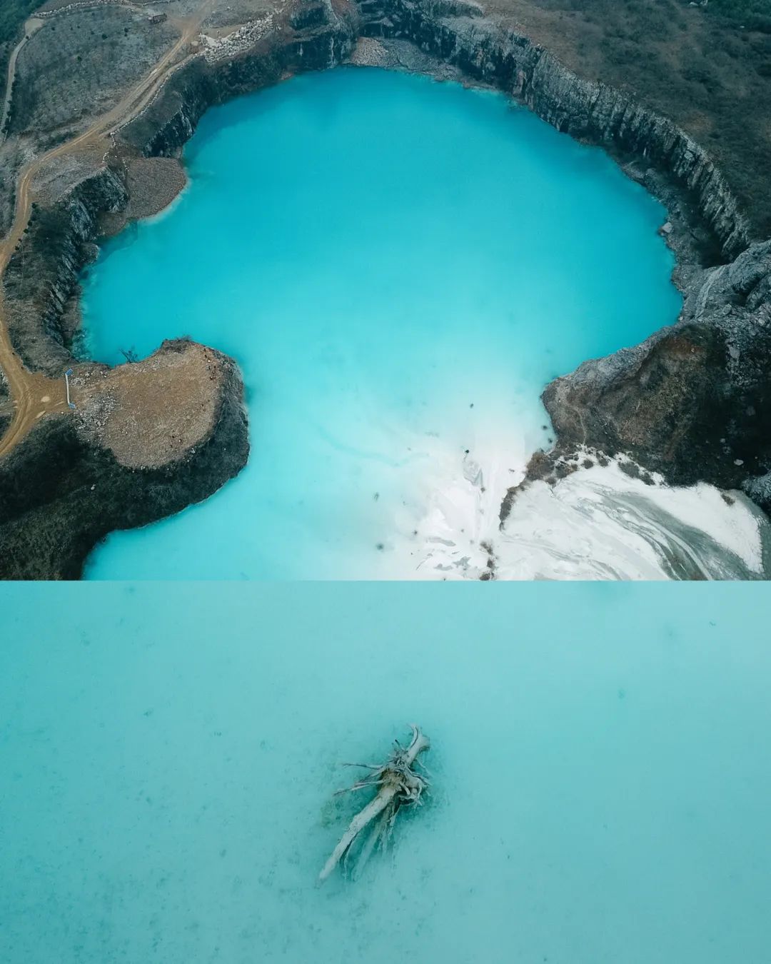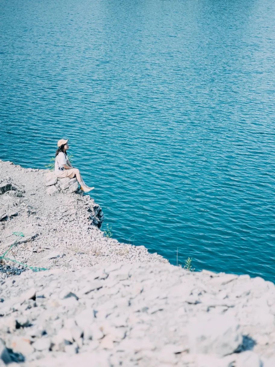 小红书@泡木旅拍PAOMU它并不是一片天然形成的湖,而是个巨大的矿坑,隐约中还能看到绿色的湖水中透着矿石。