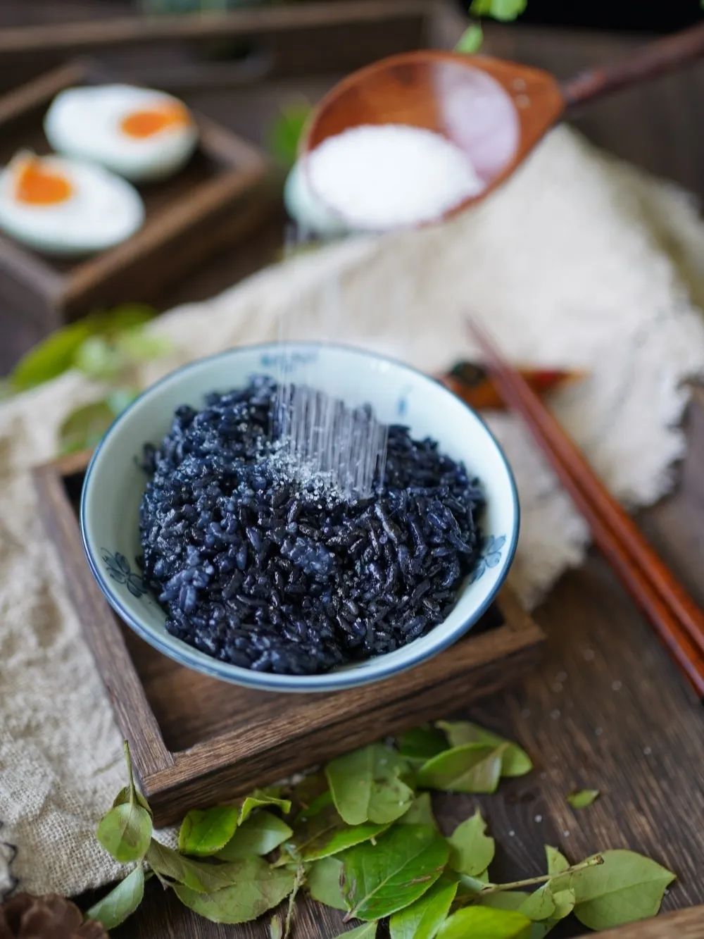 小红书@ 嘉基多肉怪所以在宜兴,软软糯糯的乌饭,一定要蘸着白糖一起吃,这样一口下去,口感软糯,苦中带甜。
