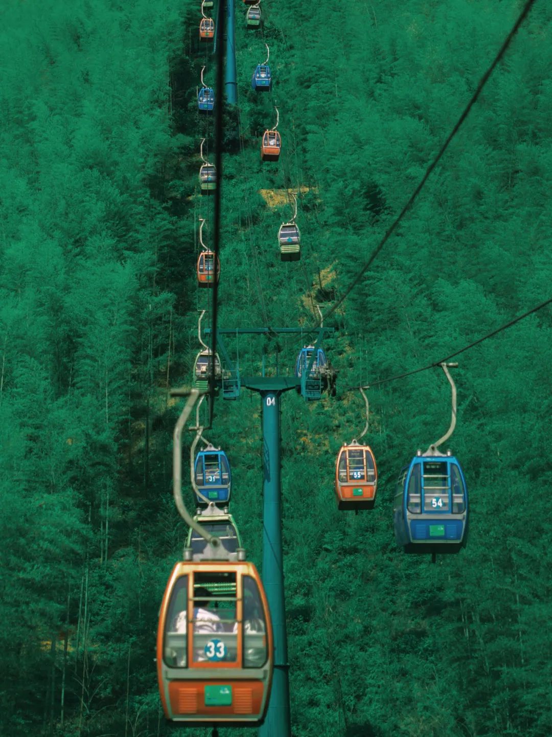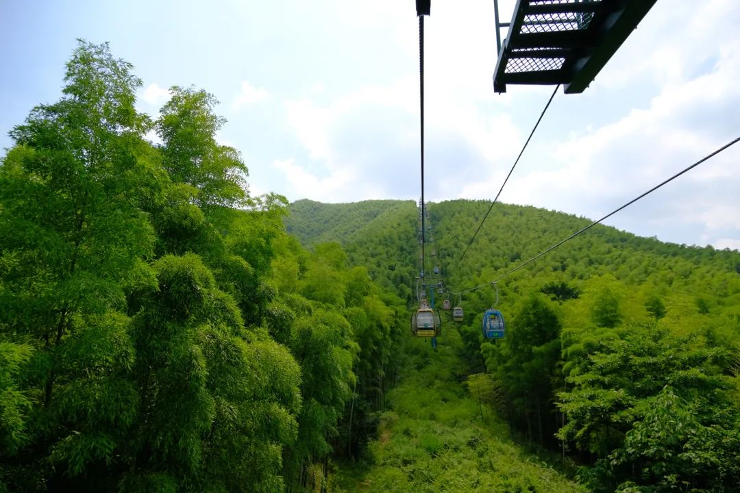 小红书@ 黑妞吉亚景区很大,如果走累了可以坐上小缆车从高空饱览竹海美景。缆车很美,在万亩竹海间穿梭,山风吹过,竹影婆娑。