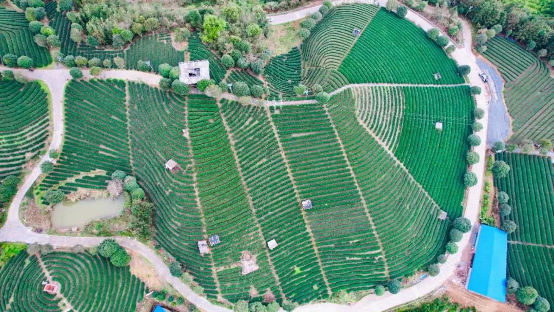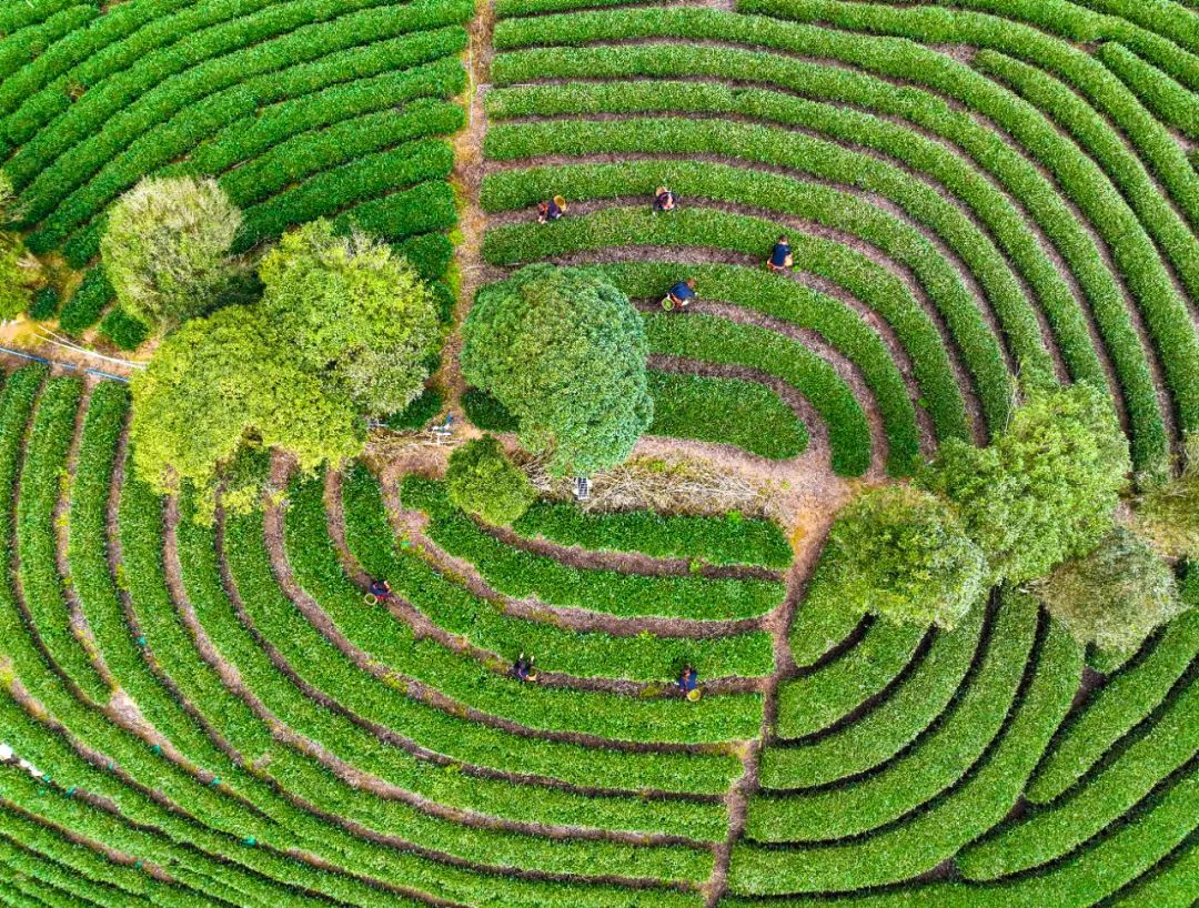 茶园犹如翡翠般镶嵌其中