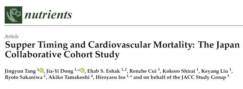 在《nutrients》杂志上曾发表过一项研究,研究人员对7.1万余名受试者进行了19年的随访,根据受试者的晚餐摄入时间将他们分成了三组,分别为晚8点之前的较早组、不规律组以及晚8点后的较晚组。对比发现,晚餐时间不规律会显著增加脑出血的风险。