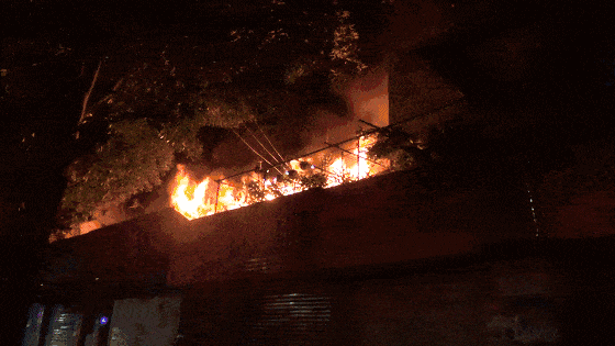 △店铺二楼露台电动自行车充电起火